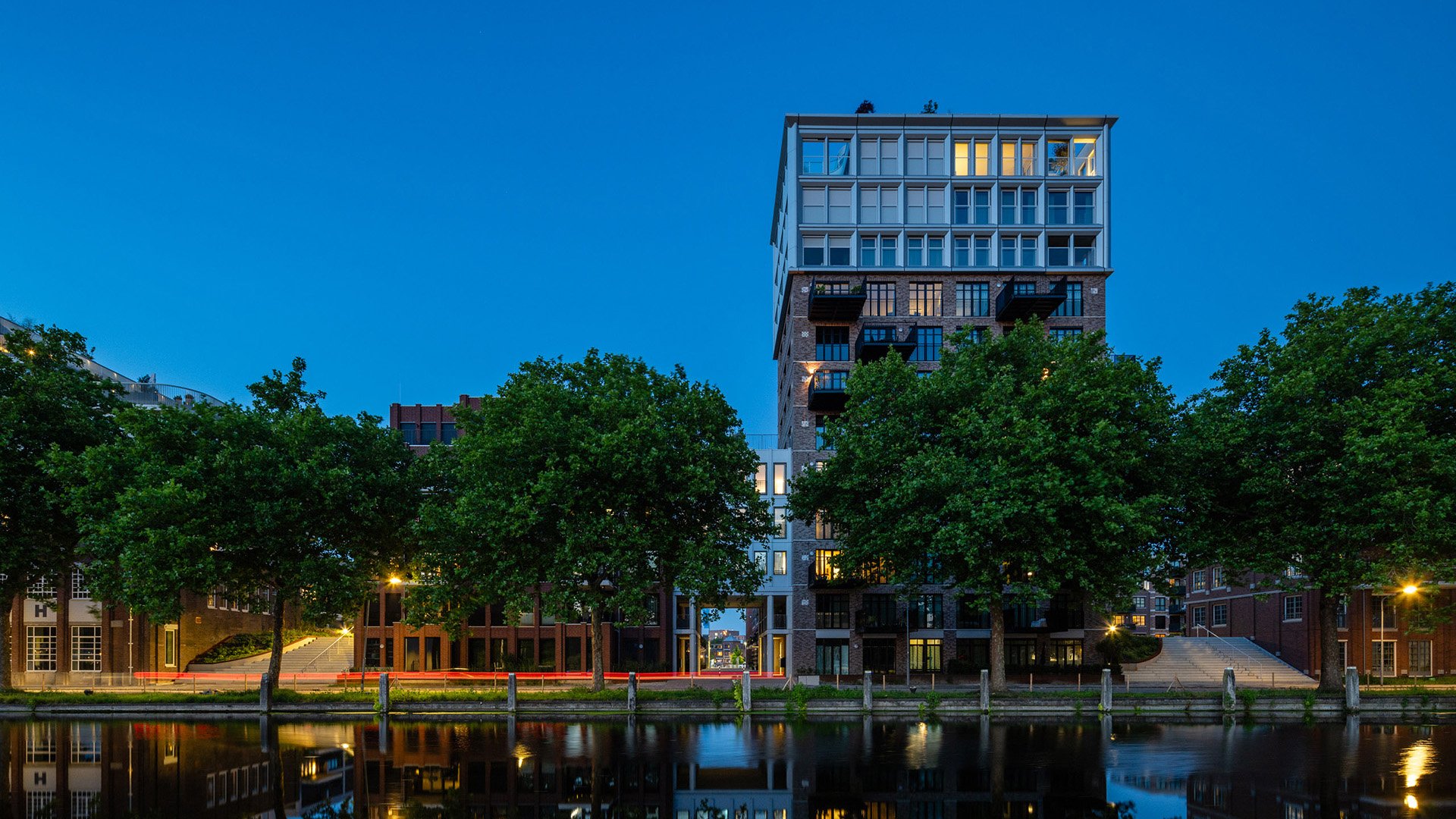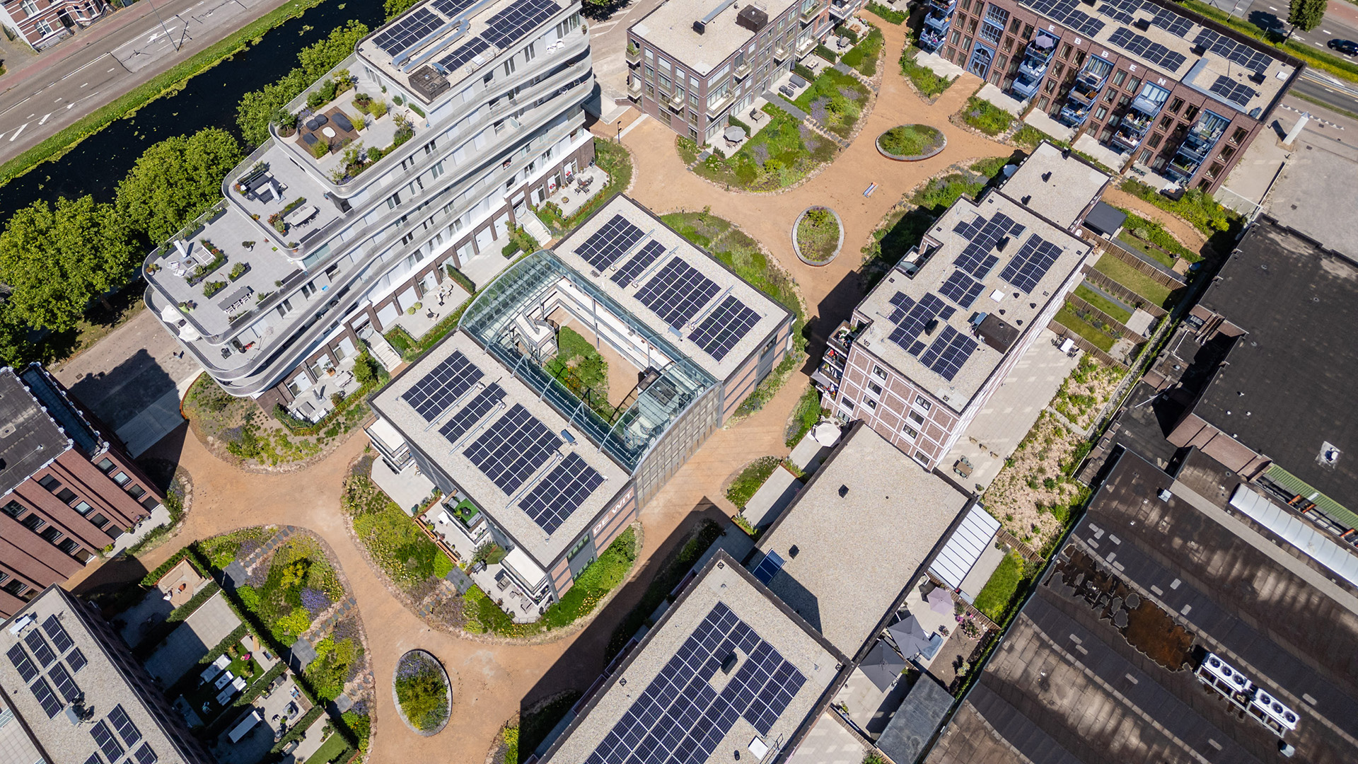 Burobol heeft voor project Oranjekade in Helmond een daklandschap van 10.000m2 ontworpen. De buitenruimte van de 265 woningen bestaat uit het nieuwe Watertorenpark, een daklandschap met twee binnenhoven en een kademilieu. Groene glooiingen met vaste planten en heesters omzomen de particuliere tuinen. Tussen het groen lopen paden van klinkers in een warme tint die uitkomen op trappen naar de kade. Het zuidelijke binnenhof is voorzien van een paviljoen, waar bewoners elkaar kunnen ontmoeten of een feestje organiseren. Het daklandschap bevindt zich boven de collectieve parkeergarage, waar bomen in de volle grond staan die met hun kronen boven het dek uitkomen. De impressies zijn vervaardigd door architectuurproducties.
